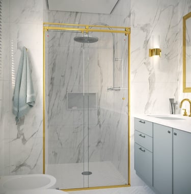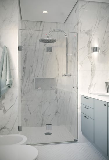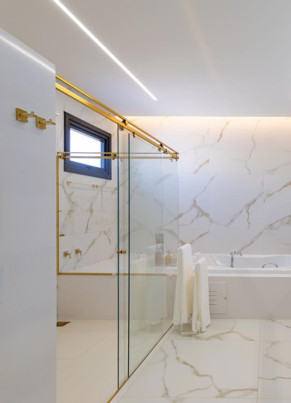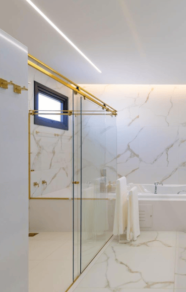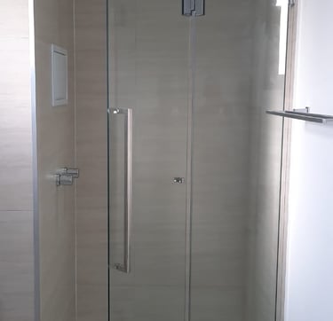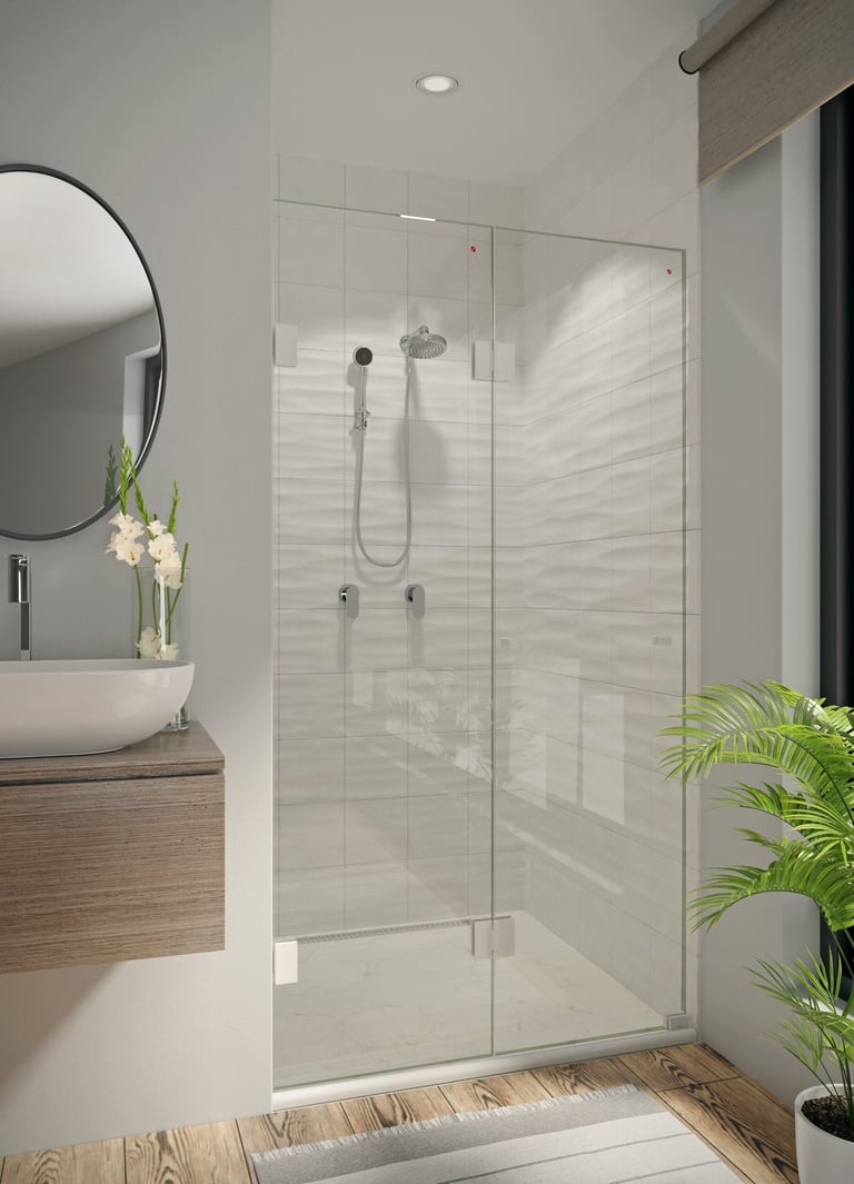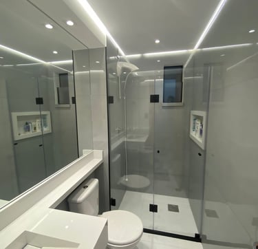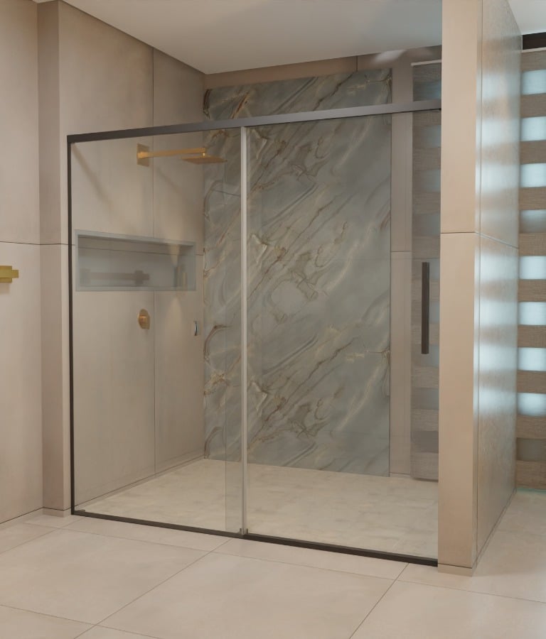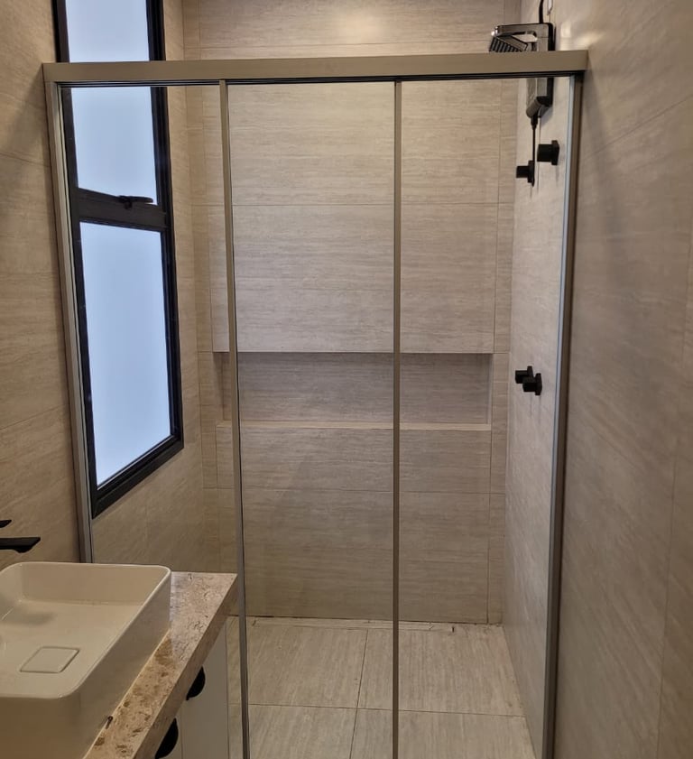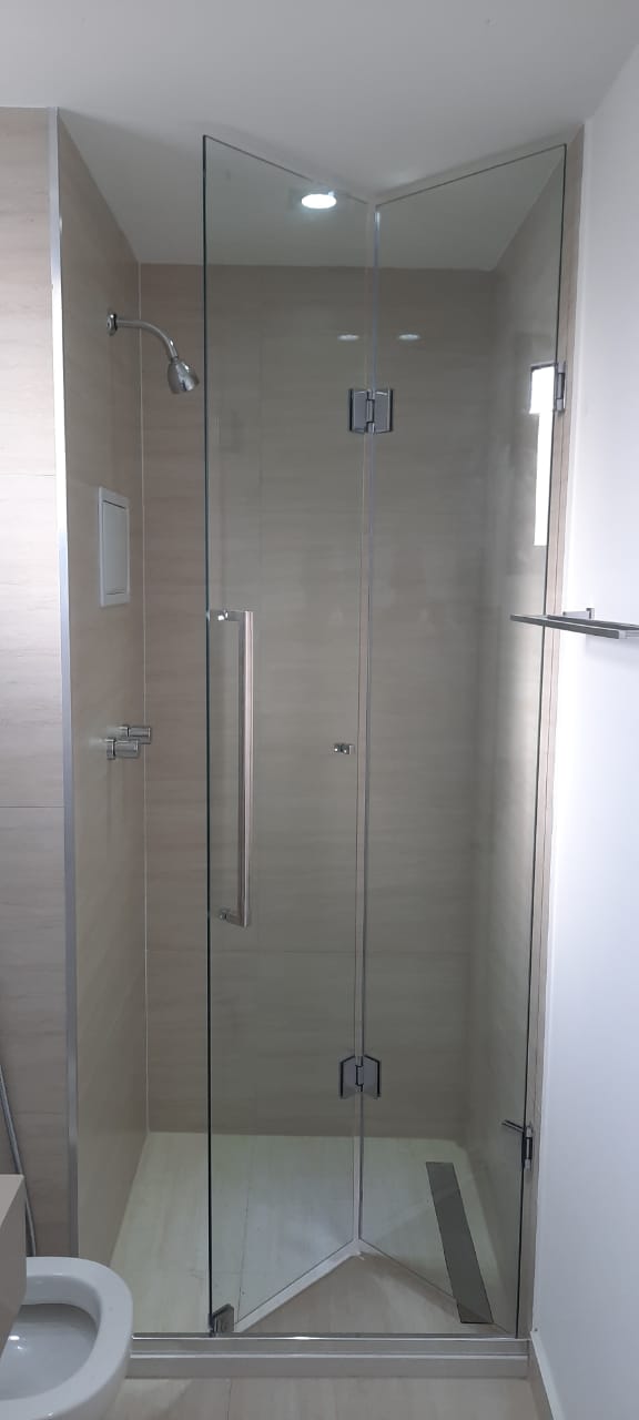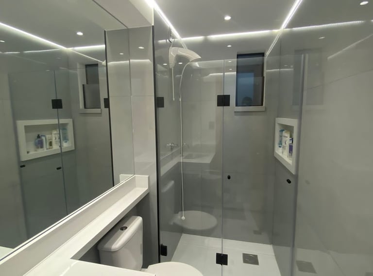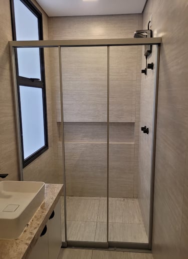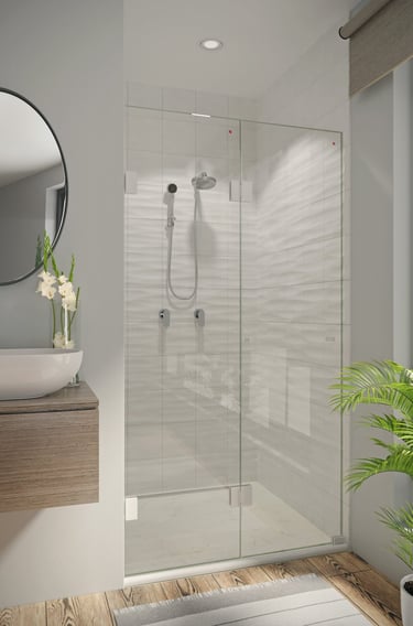 O Box Blindex Flexível possui porta articulada que permite maior abertura, sendo ideal para espaços pequenos.