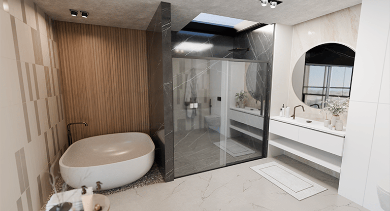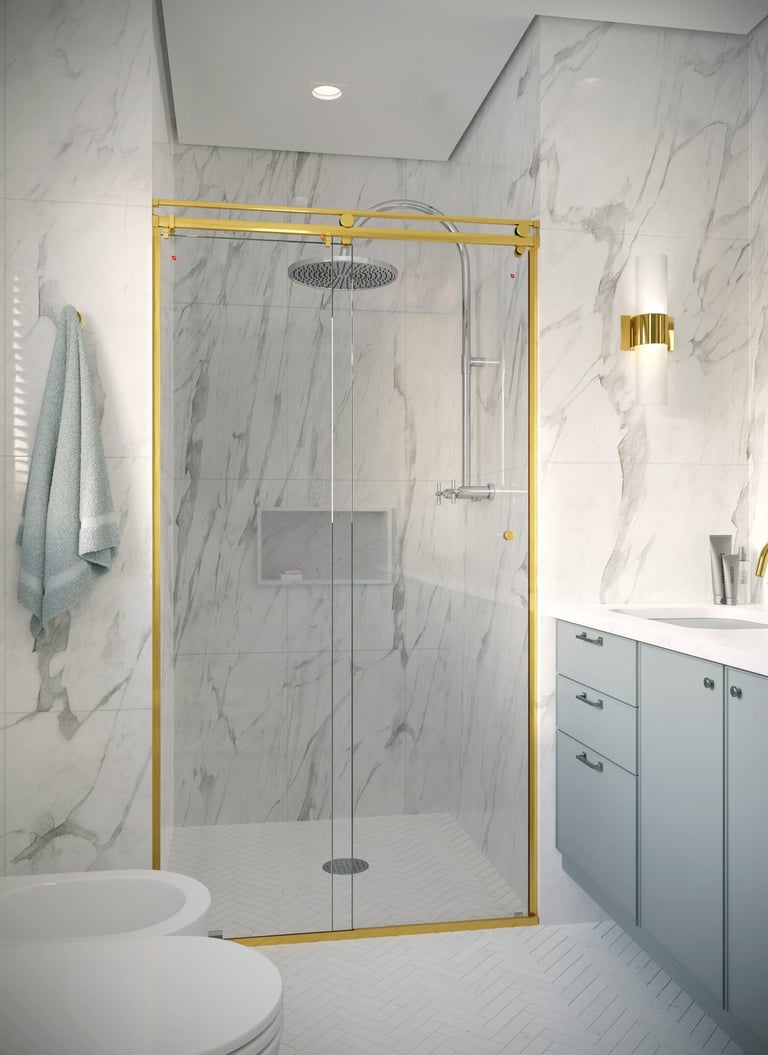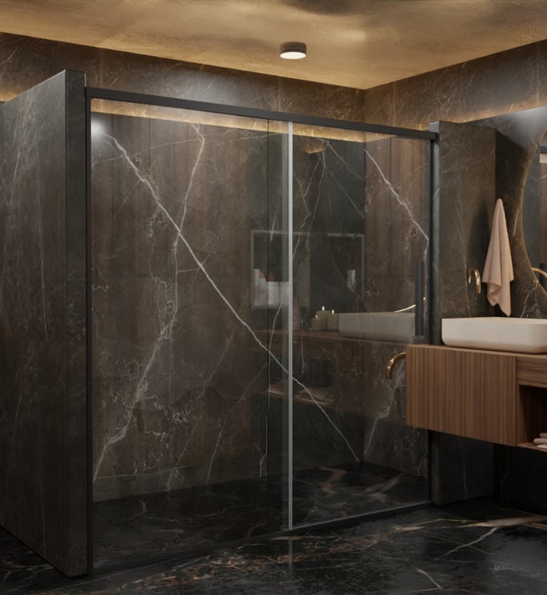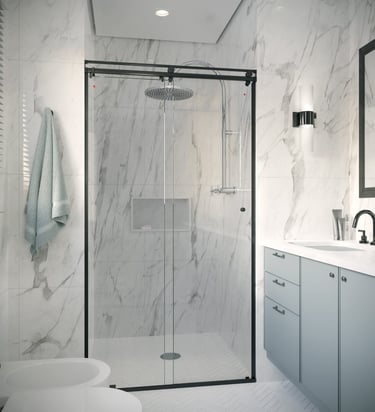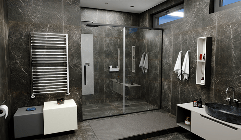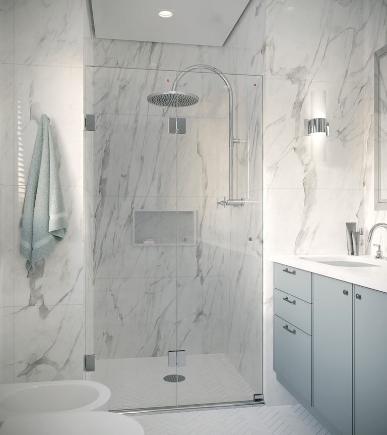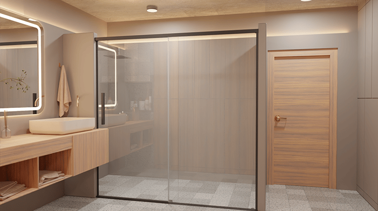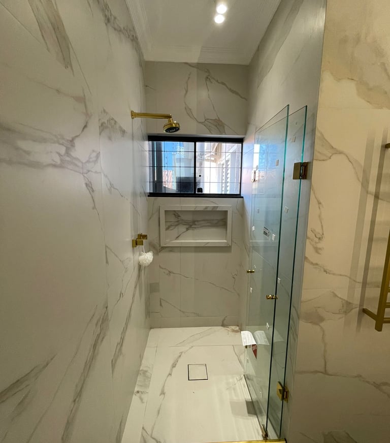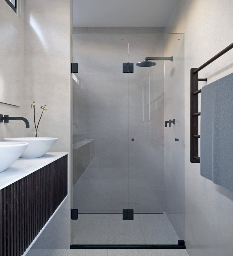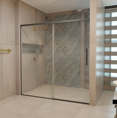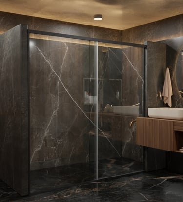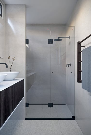 O Box Blindex Flexível possui porta articulada que permite maior abertura, sendo ideal para espaços pequenos.